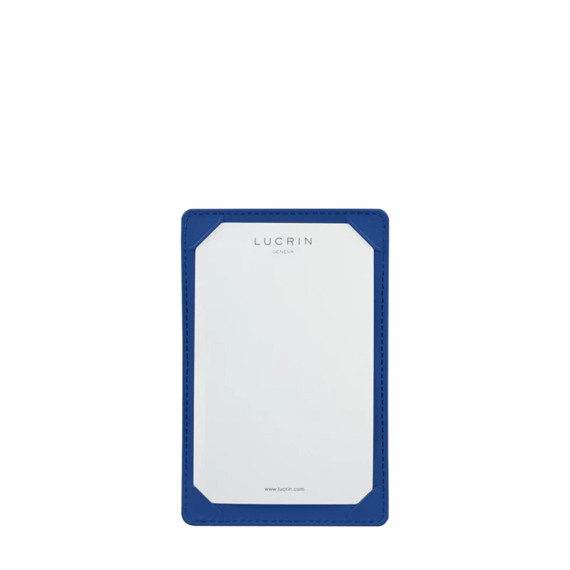 This pocket writing pad of relatively large format is ideal for meetings or press conferences. It is conceived in premium authentic leather, and the sheets are kept well in place thanks to four slits in each corner. At the back of this simple yet elegant pocket note pad, there is a large flat pocket which can store a refill of the paper notes.